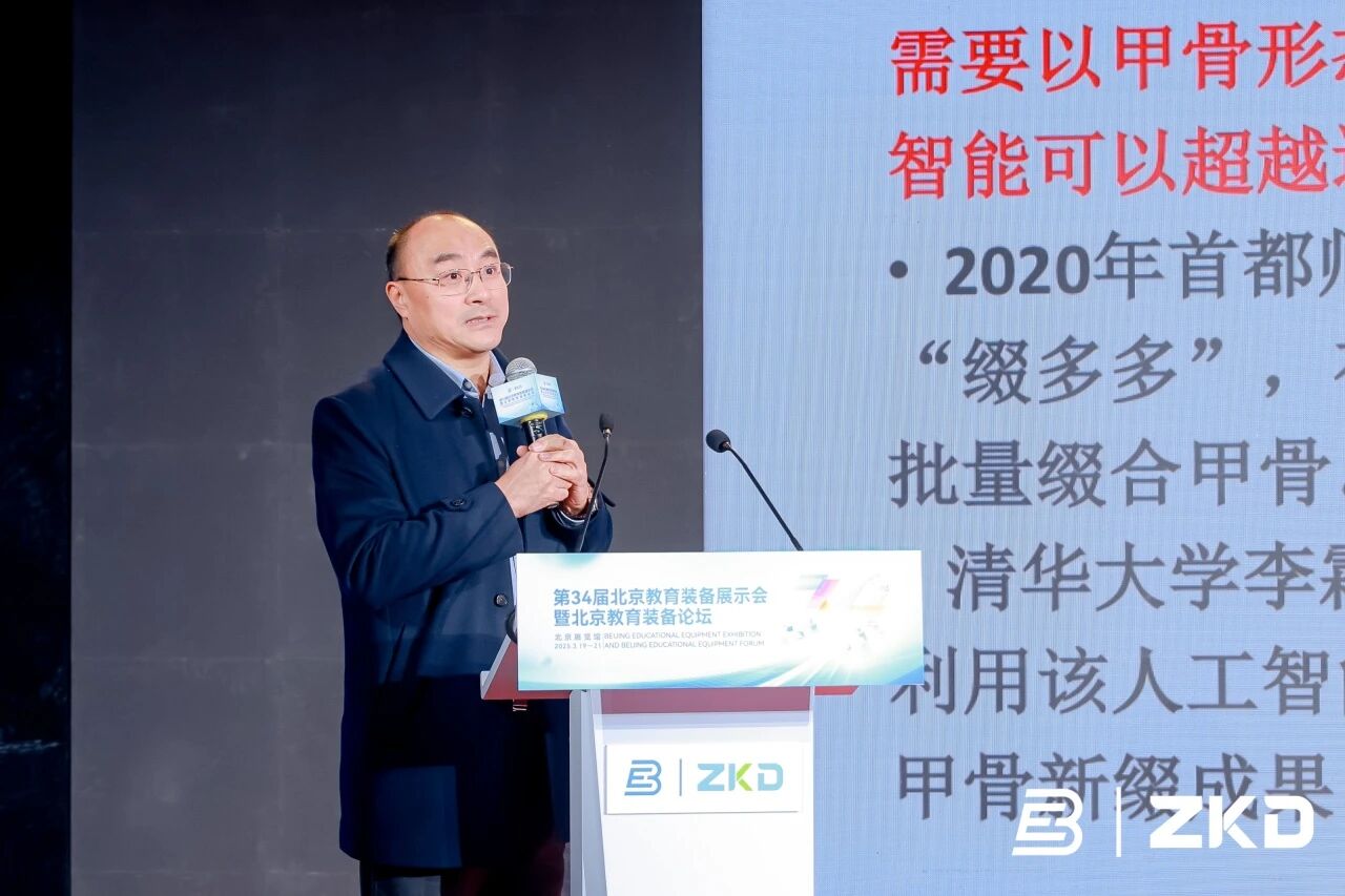 论坛上,教育部教育管理信息中心副主任、中国教育技术协会副会长曾德华分享报告《人工智能赋能教育》;北京师范大学数字学习与教育公共服务教育部工程研究中心主任武法提分享报告《AI时代,教师如何教学?》;北京市丰台区教工委书记、教委主任杨晓辉分享报告《丰台区人工智能教育生态建设的思考与实践》;北京市八一学校校长王华蓓分享报告《遇见AI,赋能教育》;北京市第五十中学校长王祺分享报告《固本培元,守正创新——浅析人工智能技术在中小学教育中的应用原则与注意事项》;北京市丰台区丰台第五小学教育集团党委书记、总校长李磊分享报告《人工智能时代,课堂教学的思考与实践》;北京市教育学会教育信息化专委会副理事长(特教组),平谷区特教中心原书记兼校长张晓成分享报告《人工智能助力北京市特殊教育高质量发展》;首都师范大学文学院副院长、教授陈英杰分享报告《人工智能在古文字与出土文献研究领域的应用与展望》;北京师范大学人工智能学院院长、教授黄华分享报告《主动拥抱人工智能 实现基础教育提质增效》。