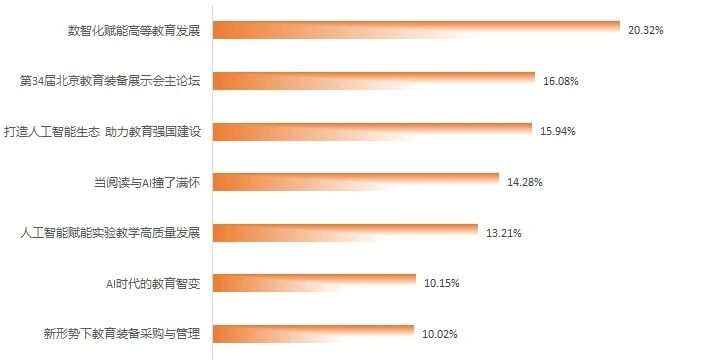 今年,展会继续融合线上线下、直播录播等多元手段,全方位聚焦丰富多样的教育智慧成果,精心组织呈现了“第34届北京教育装备展示会主论坛” “数智化赋能高等教育发展” “AI时代的教育智变”“打造人工智能生态 助力教育强国建设” “新形势下教育装备采购与管理” “当阅读与AI撞了满怀” “人工智能赋能实验教学高质量发展”7场高水平学术论坛,来自教育各界的发言嘉宾达60位,包括来自高校的15位学者、教育行政部门的12位领导、教育研究单位的14位专家、各类中小学校的7位校长,以及民主党派人士、科技精英等,呈现出百家争鸣、百花齐放的学术交流盛景。